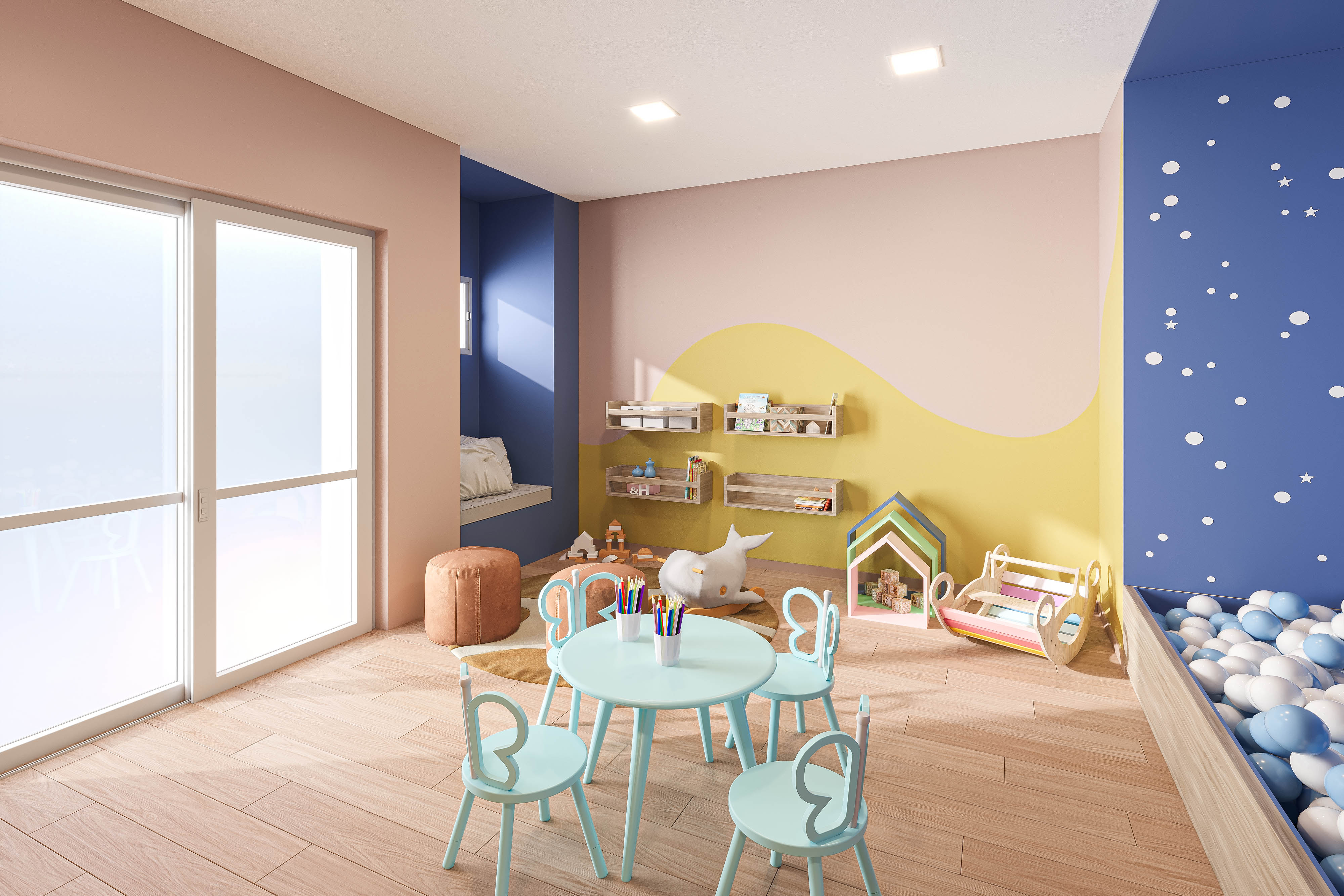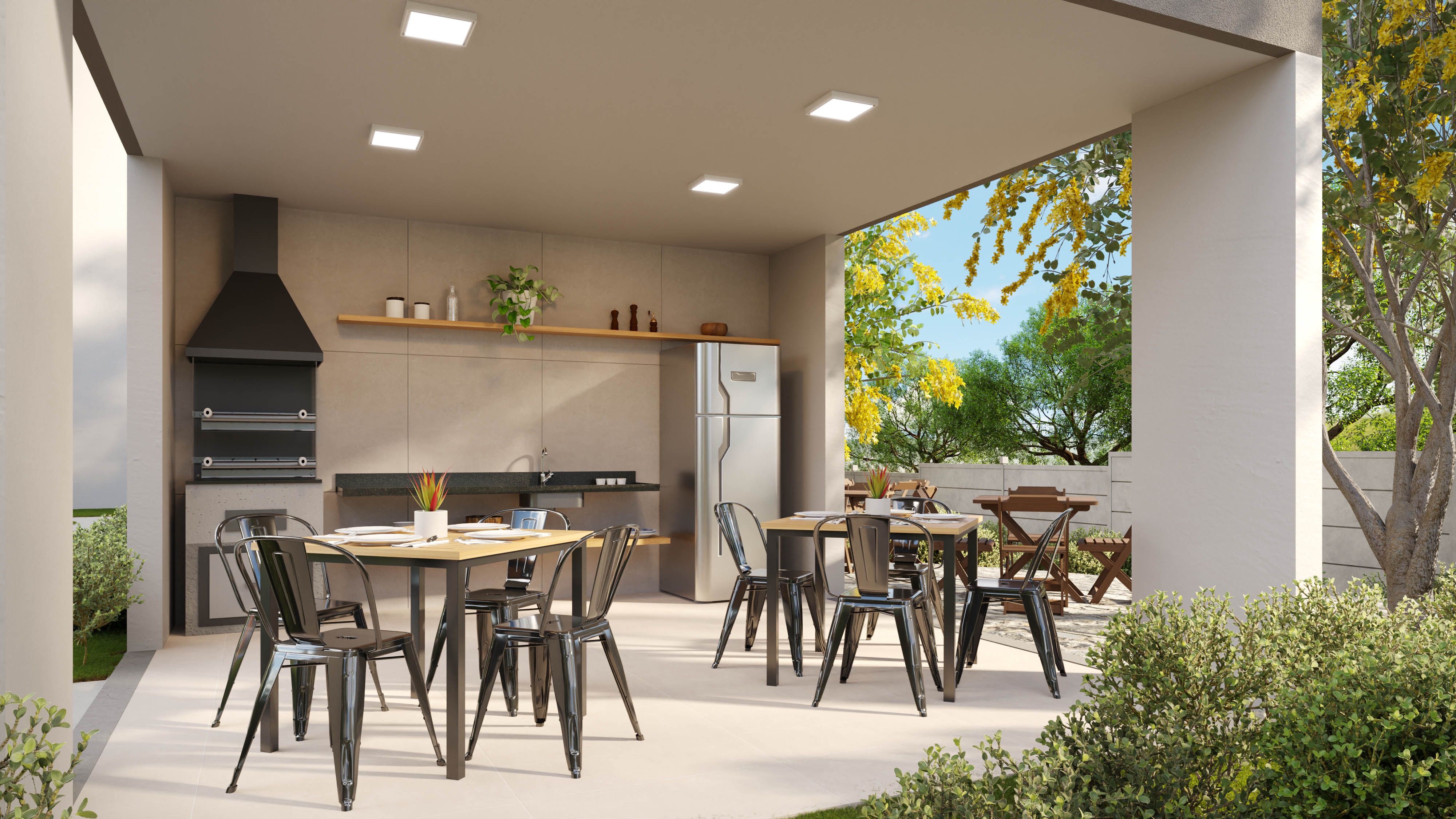 Imagens meramente ilustrativas, podendo sofrer alterações devido à rede elétrica não estar representada. Por se tratar de bem a ser construído, pode sofrer alteração sem aviso prévio. As perspectivas e ilustrações artísticas mostram ambientes e vegetação de porte adulto. Consulte memorial descritivo da sua unidade.